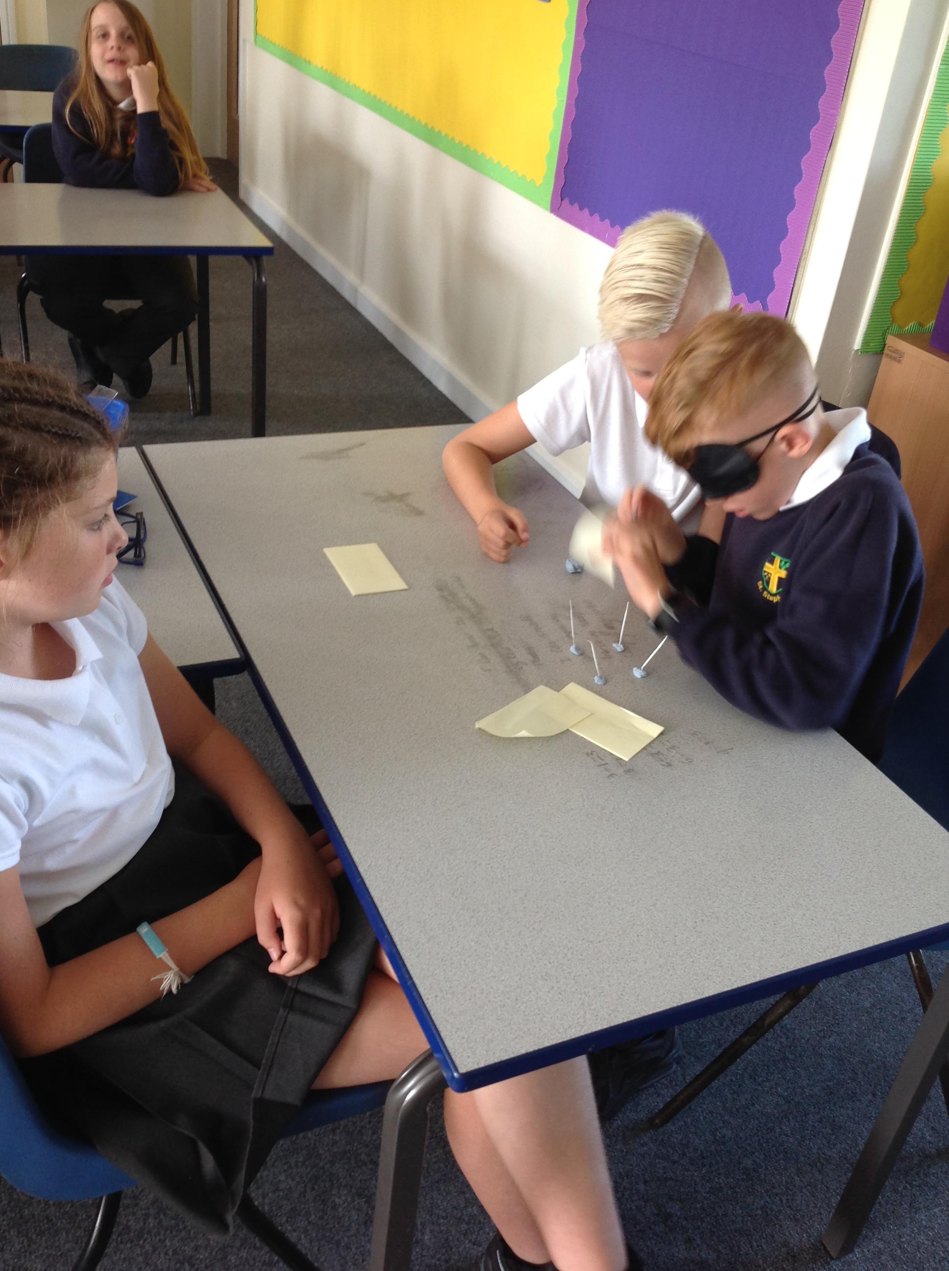 This week we imagined that we were Arctic explorers stranded before a big storm. Using basic materials, we constructed a shelter designed to withstand strong winds however with frostbite and snow blindness it was not easy! As you can see, only one of us could handle the materials but that person couldn't see! When our shelter was knocked down by the wind (from the fan) we had to find another way and not give up. This strengthened our growth mindsets that we have been learning about.