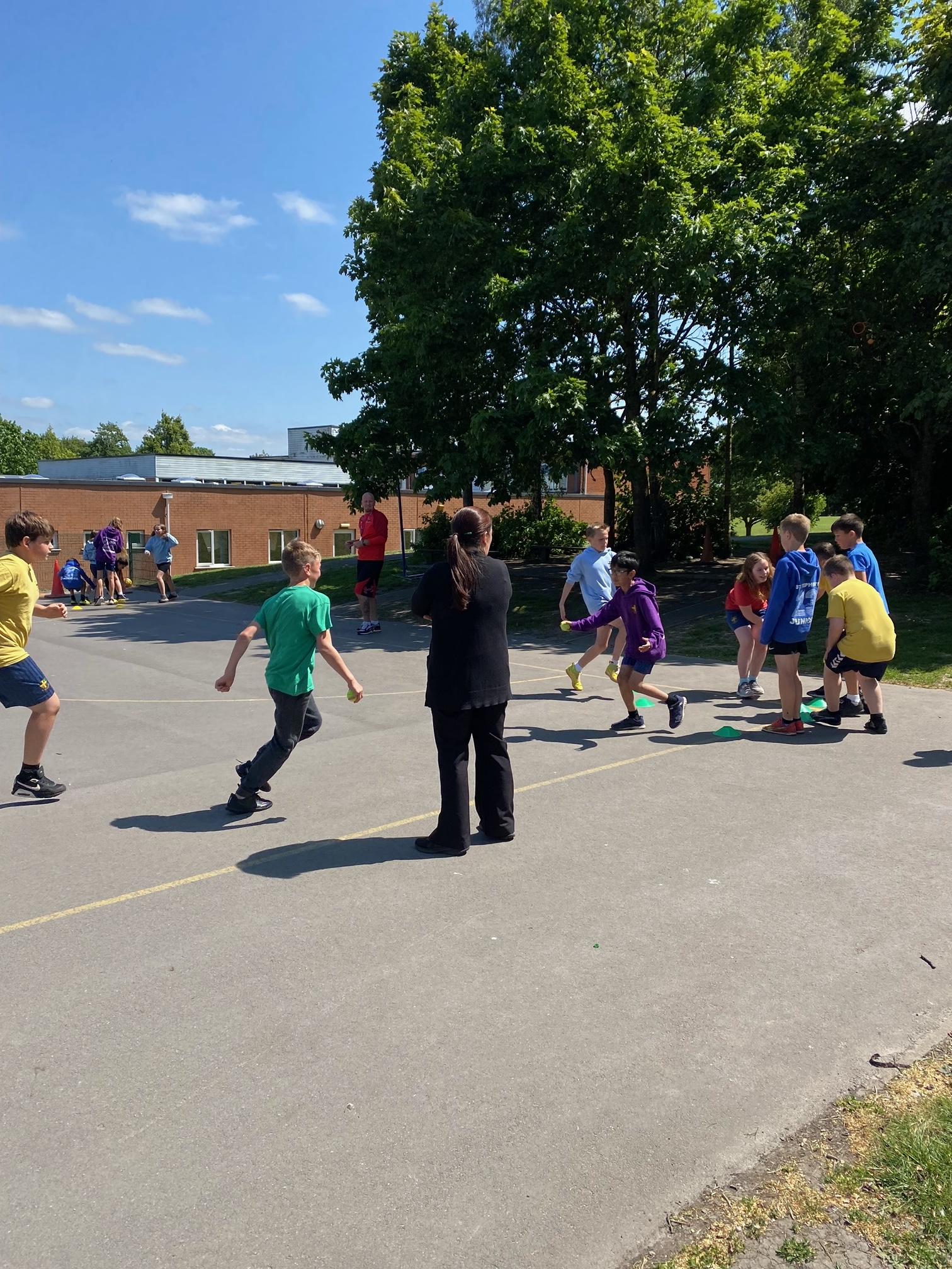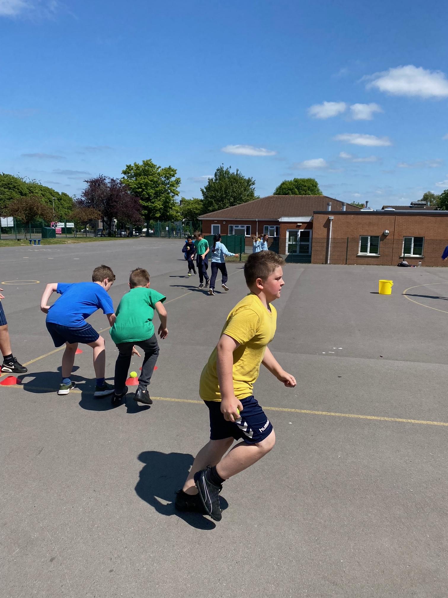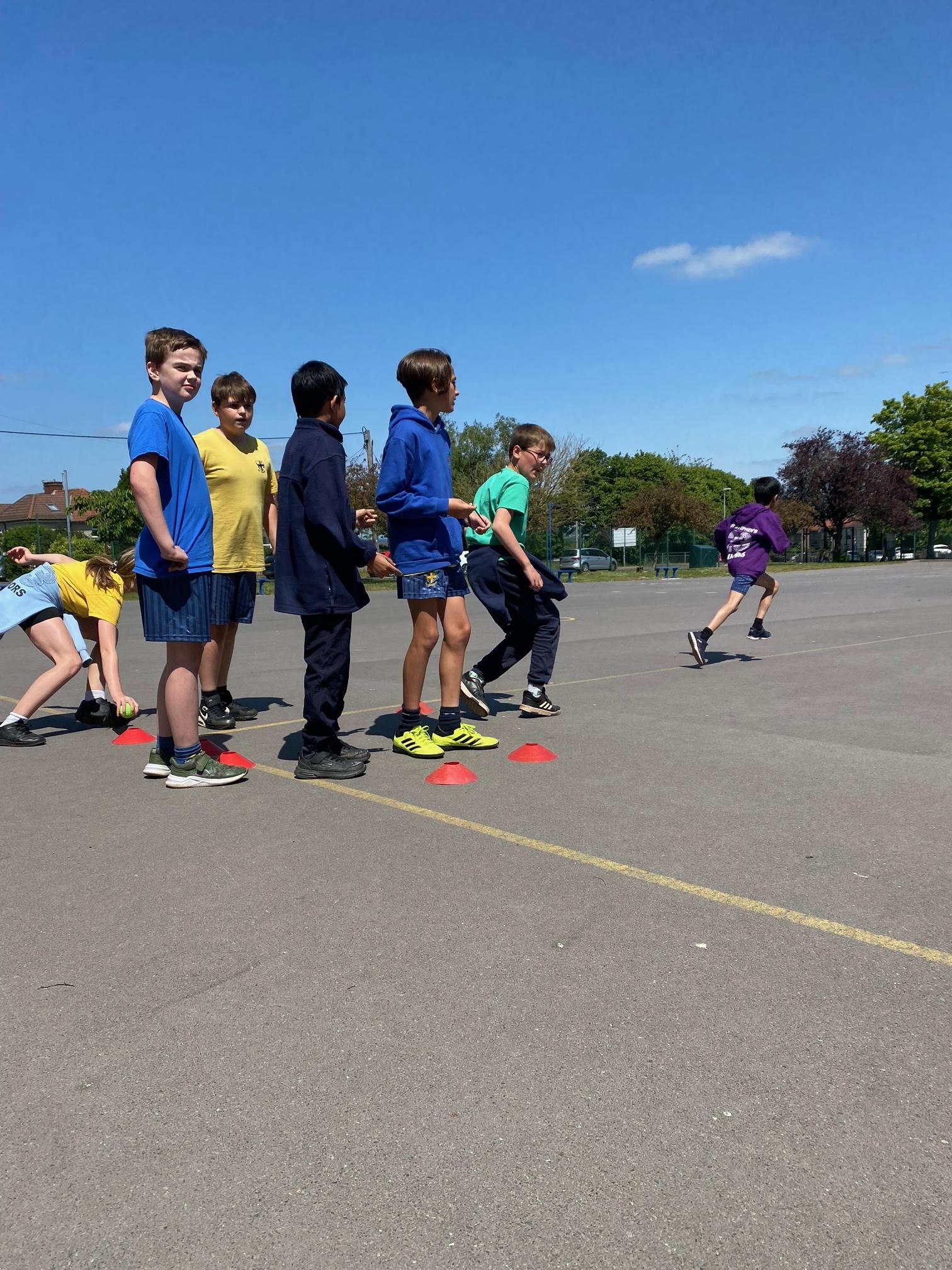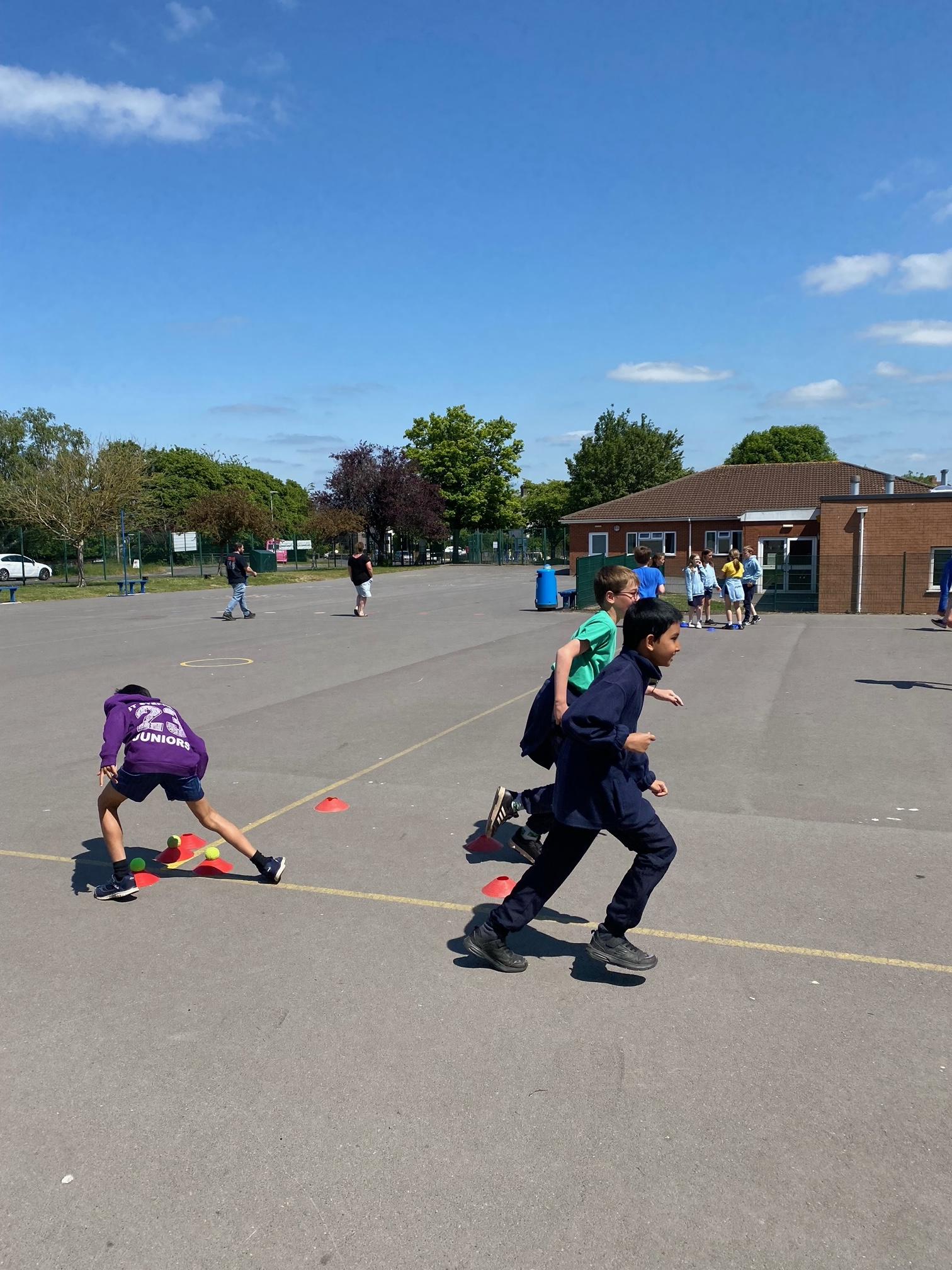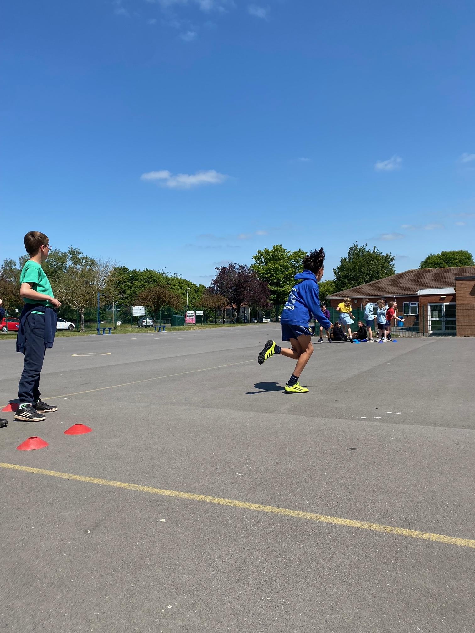 This term we've been honing our football skills on the outdoor pitch. However in the final week, teachers from Mangotsfield secondary came in to challenge us to beat each other in a House Dribbling Relay Race!