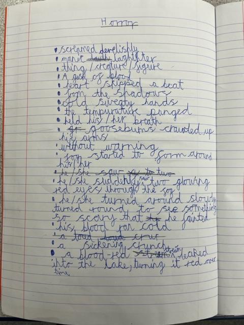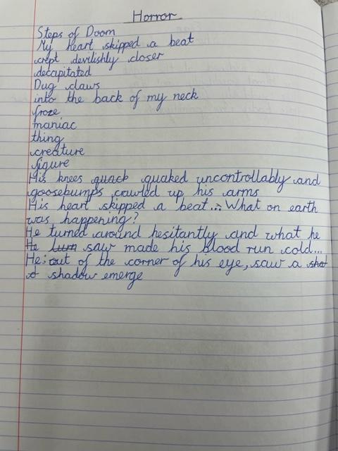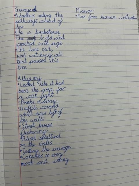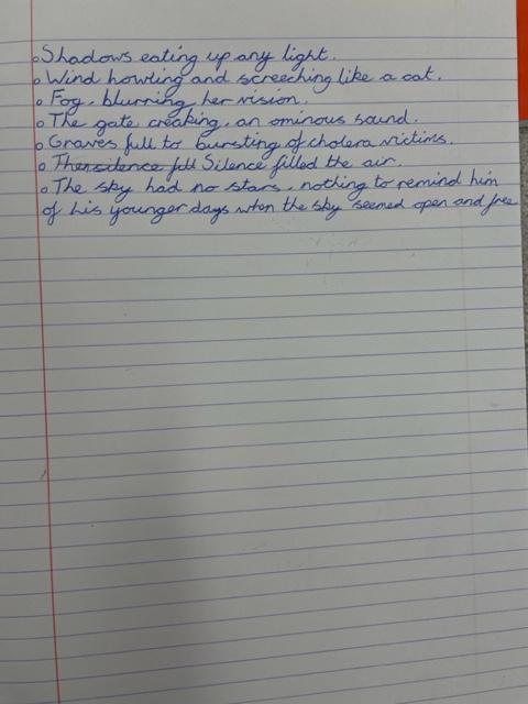 This week we have been using our vocabulary books to explore and develop our vocabulary. It has been great to spend time really immersing ourselves in language and thinking carefully about what different words mean. These books will help us to write our gruesome Penny Dreadfuls and we have come up with some fantastic phrases and sentences to create tension and suspense. We are so excited to get writing!