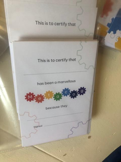 Each day, a child is chosen to be a ‘Metacog of the day’. At the end of the day, children celebrate how this child has worked as a Metacog and award them a medal and certificate.